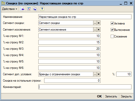 | Нарастающая скидка по строкам в Рознице 1.0 |